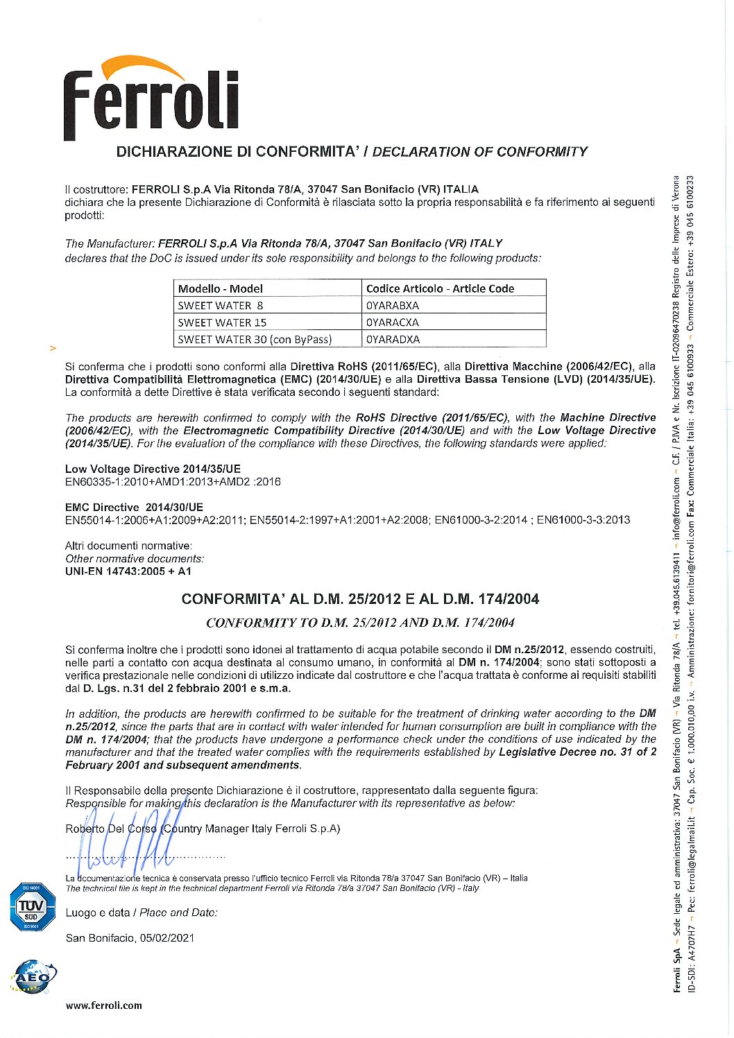 – Gli addolcitori della serie SWEET WATER, affidabili e compatti, garantiscono la massima efficienza grazie agli 8, 15, 30 litri di resina ad elevata capacità di scambio. La facilità di installazione e di programmazione della valvola rendono gli SWEET WATER applicabili a molteplici contesti, sia residenziali che prettamente tecnologici.