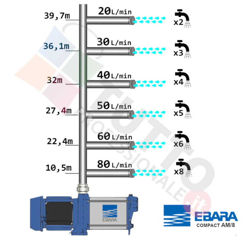 Elettropompa monofase compact centrifuga multistadio orizzontale Silenziosa 1,2 hp EBARA