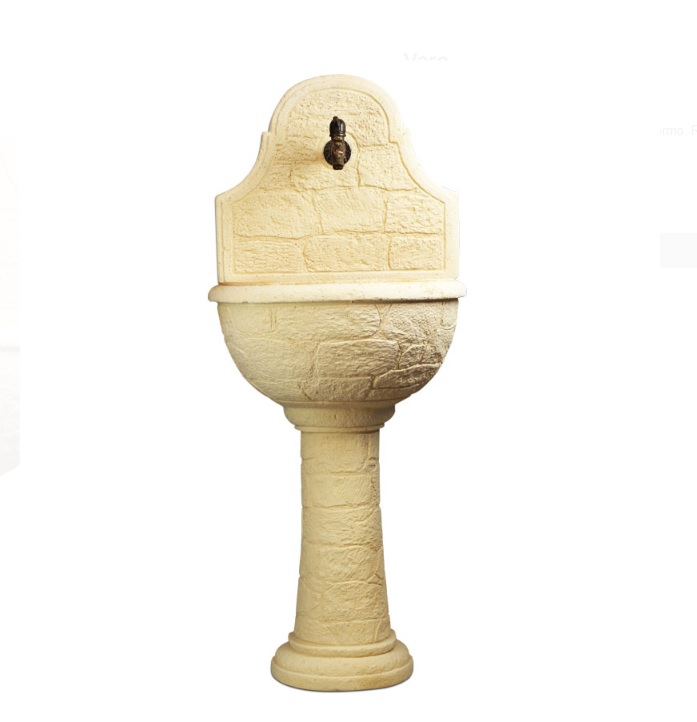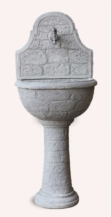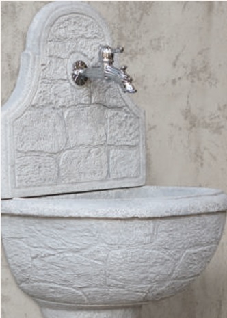 Fontana da parete pietra ricostruita in cemento e granulato di marmo. Disponibile nelle varianti: