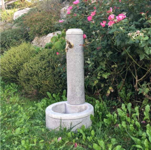 Fontana ad angolo a muro in cemento e granulato di marmo Brenta