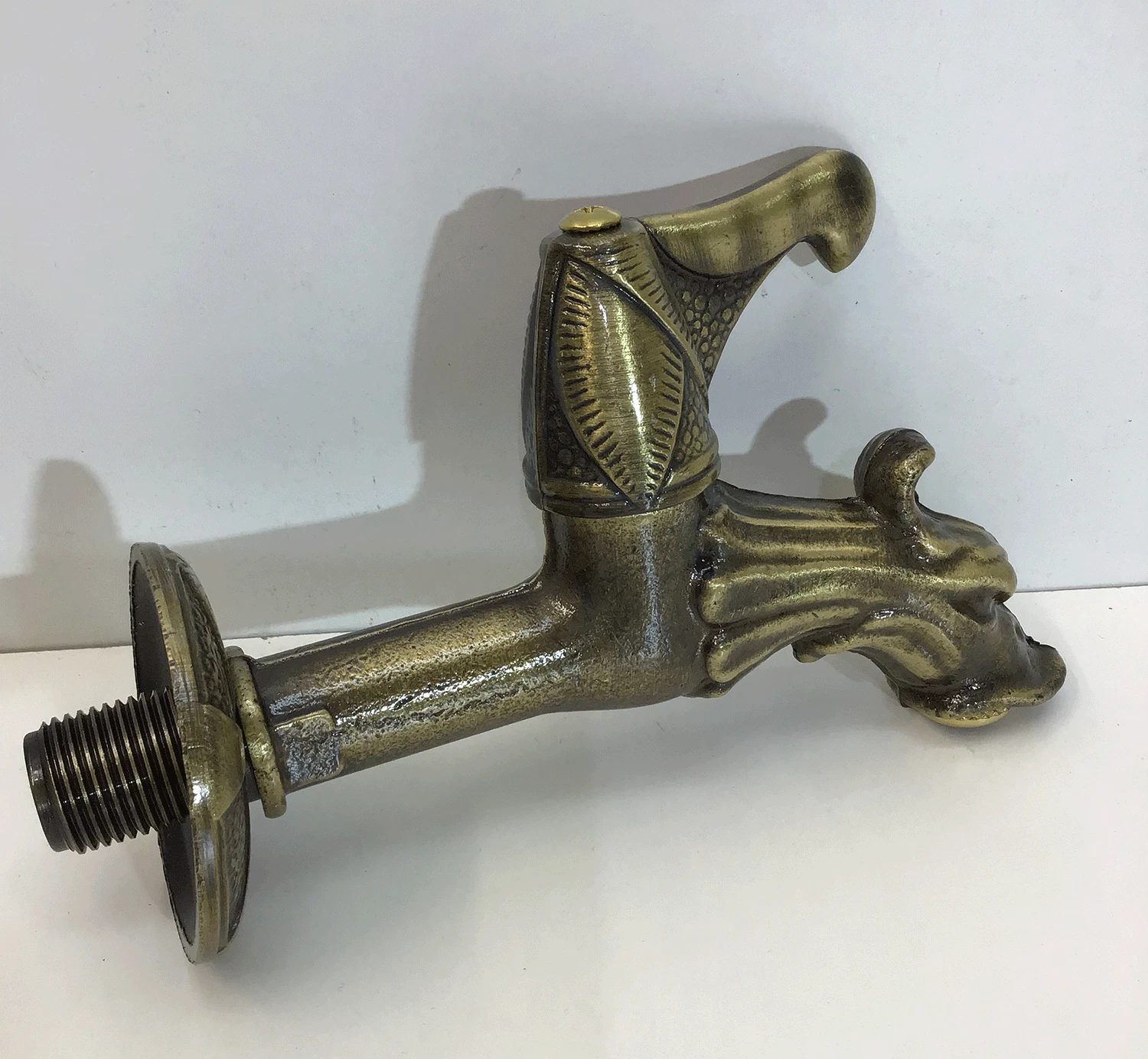 Rubinetto in stile rinascimento ornamentale da giardino a vitone tradizionale completo di rosone rompigetto e portagomma. da 1/2 pollice colore ottone giallo FARG