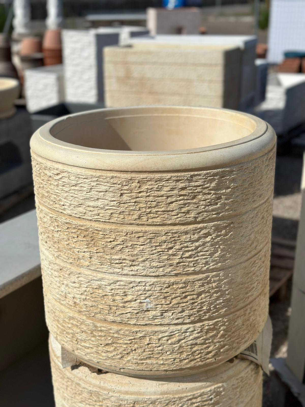 Vaso tondo grande in cemento e granulato di marmo. resistente a qualsiasi temperatura